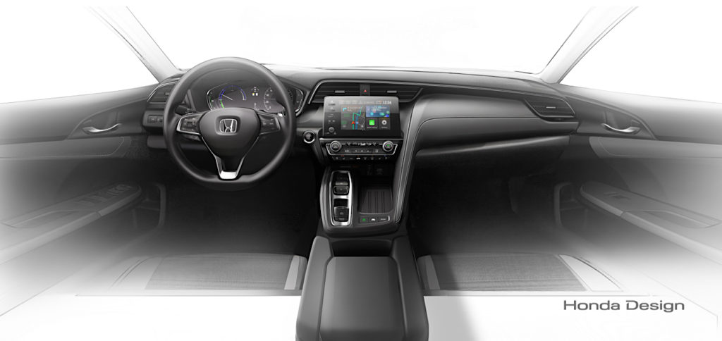 This rendering of the Insight’s interior looks quite a bit different from the Civic’s with a larger floating-style center display screen and what appears to be a shift-by-wire system like the Clarity’s and 10-speed Accord.