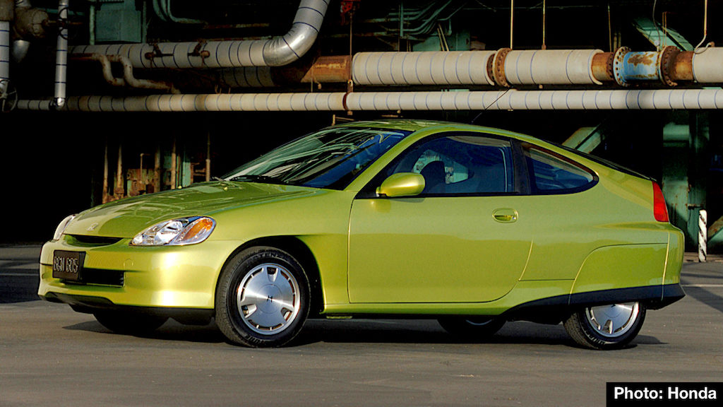 Times have changed quite a bit since Honda introduced the first-generation Insight hatchback (2000 model shown above). The lightweight two-passenger hatch boasted an EPA rating of 70 mpg and was the first Honda with the Integrated Motor Assist (IMA) hybrid setup.