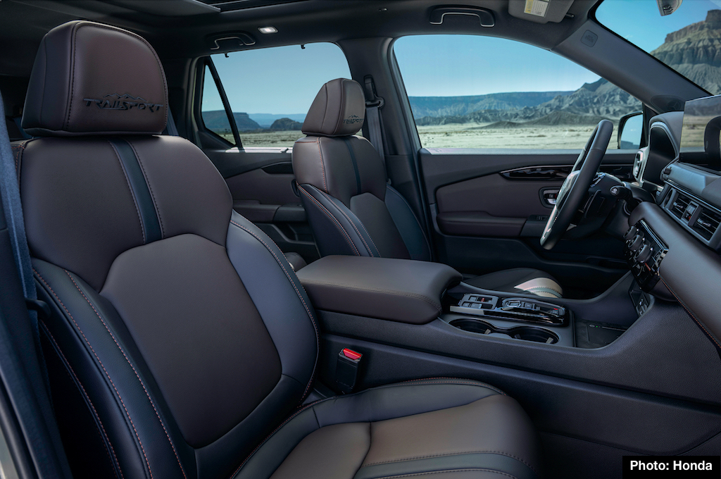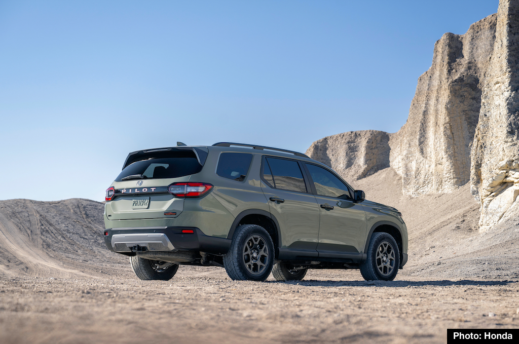 All Pilots gain redesigned front styling with larger grilles plus new lower scuff plates in the front and rear. TrailSport wears an exclusive rear scuff plate that enhances its adventure-ready design and offers a new exterior color called Ash Green Metallic.