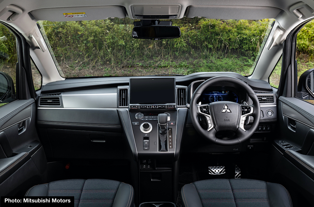 Safety features for Delica D:5 include an enhanced Collision Mitigation Braking System, Parking Sensor for the front and rear bumpers, and an improved Multi Around Monitor with side and front view screens, plus a bird’s eye view.