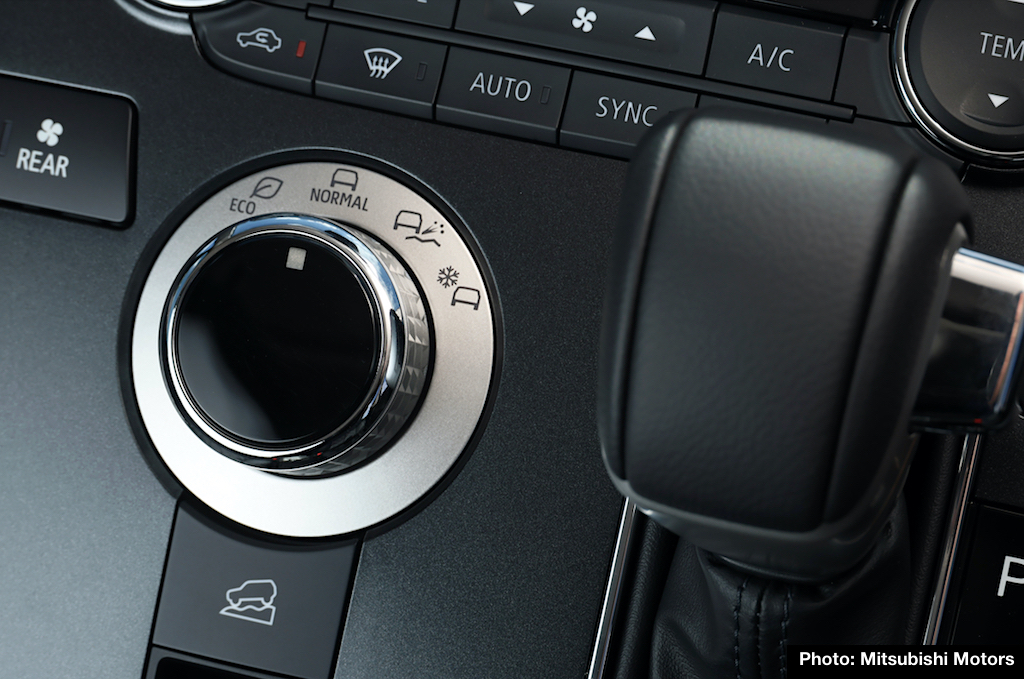Drive Modes, with four selections, offer the choices of Normal (4WD), ECO (2WD), Gravel for off-road driving, and Snow for slippery surfaces. Hill Descent Control is also included on Delica D:5.