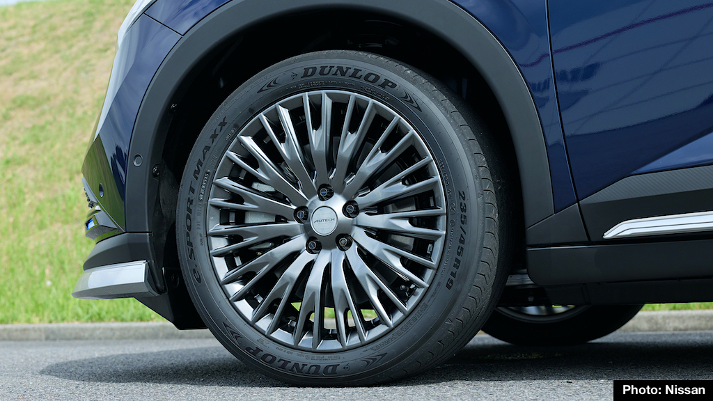 Special 19-inch alloy wheels feature a dark metallic finish and multi-spoke design. Exterior body colors offer five choices, including Deep Ocean Blue with a Super Black roof. AUTECH says that blue is the brand’s iconic color, “evoking the image of the sea and sky of Chigasaki, Shonan, where the brand originated.”