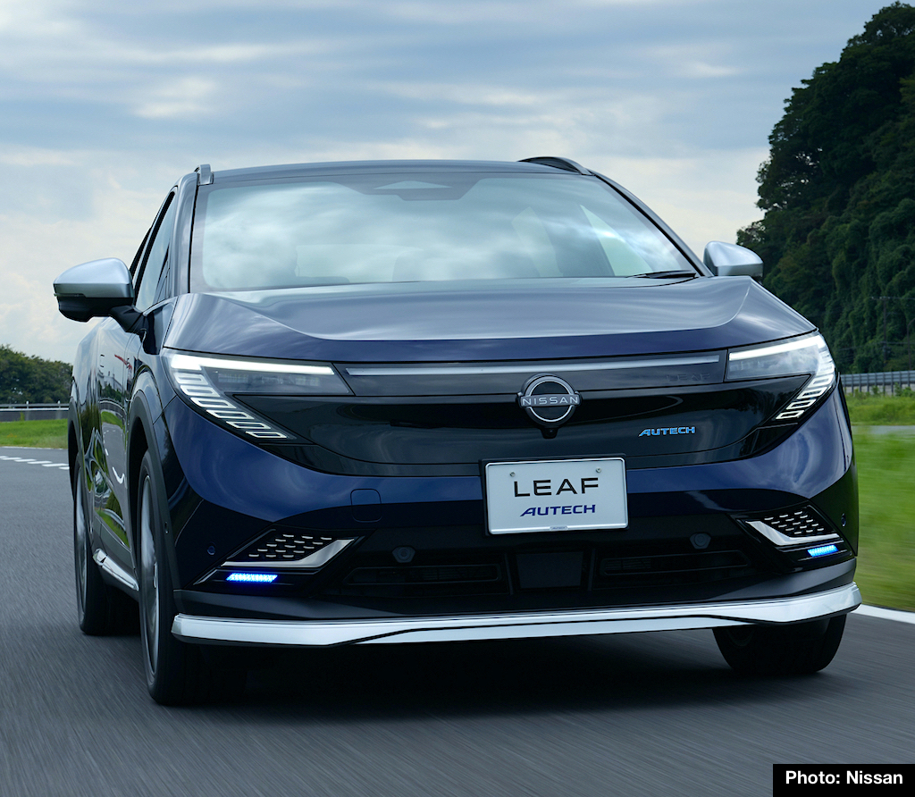 The all-new, third-generation Nissan LEAF looks sleek and futuristic with its crossover body style and aero-efficient fastback profile. For those seeking to enhance the sporty look, Nissan has unveiled a customized version of the new EV, called LEAF AUTECH, that will be available in Japan.