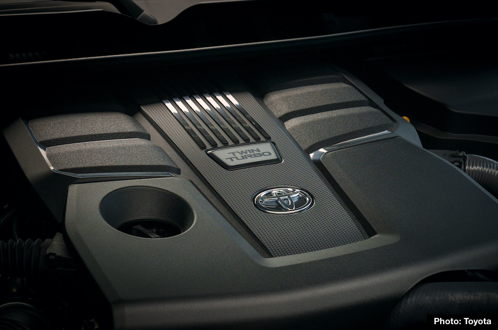 The Land Cruiser 300’s parallel hybrid powertrain includes a 3.5-liter V6 twin-turbo gas engine, single motor-generator, 10-speed automatic transmission, and nickel-metal hydride battery. Combined output is 457 DIN hp (228 kW) and 790 Nm torque, making it the most powerful Land Cruiser yet, according to TME.