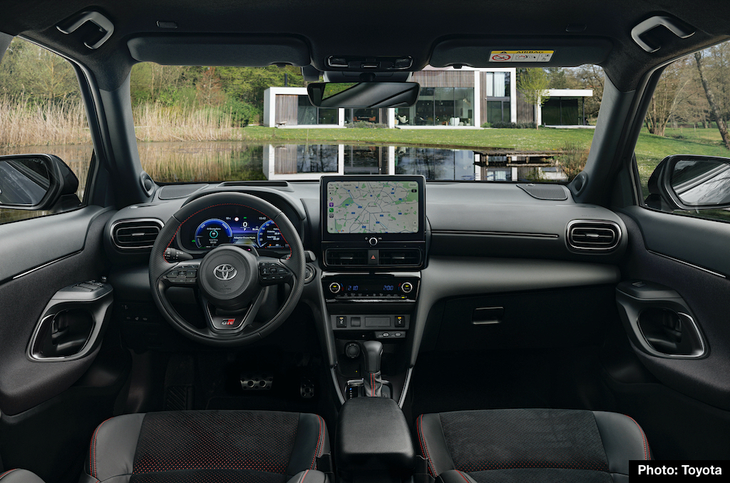 Yaris Cross delivers the Toyota Smart Connect multimedia system with cloud-based navigation, voice recognition, wireless Android Auto™ and Apple CarPlay®. Additional GR Sport features include ambient lighting, a wireless charger, blind-spot monitor, and power tailgate.