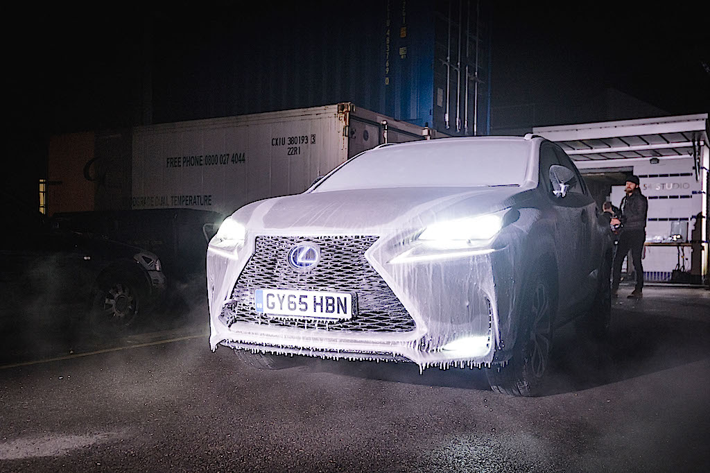 After three months’ research, design and testing, the finished wheels were fitted to a Lexus NX for the ultimate ice drive. The car itself was deep-frozen, stored for five days at -30°C (it started first time) before being driven on a London road. The use of in-wheel LED lighting added an extra dramatic dimension to the project.
