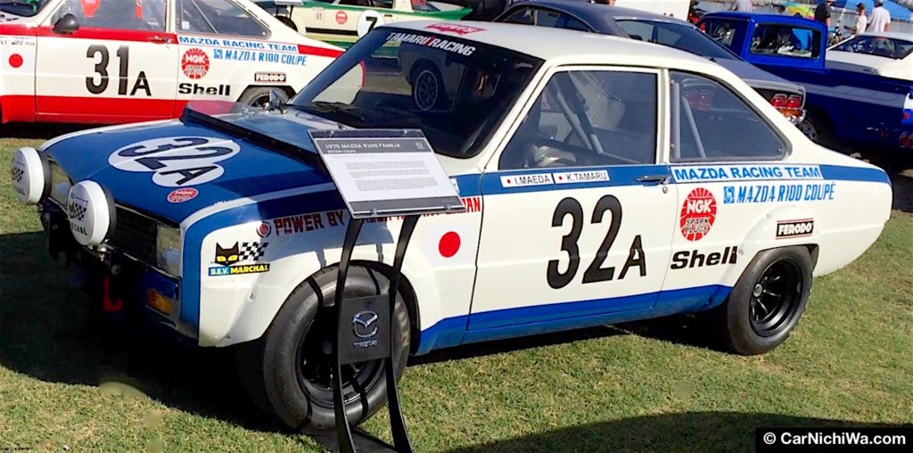 Mazda began its involvement in motorsports in 1968, following the release of the Cosmo Sport. Mazda described the rare 1970 racing car above as, “The Mazda R100, known outside Japan as the Familia Rotary Coupe, sporting a two-rotor 10A engine. The R100 won its race debut at the 1969 Singapore Grand Prix with longtime Mazda driver Yoshimi Katayama (1940-2016) behind the wheel.”