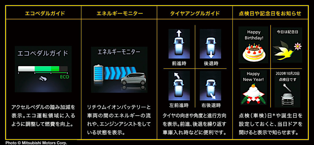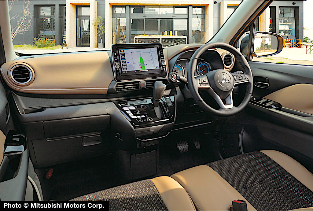 New powertrains include a normally aspirated 660cc 3-cylinder 12-valve DOHC engine, plus a turbocharged variant, coupled to a Continuously Variable Transmission (CVT), and a choice of two- or four-wheel drive. A standard Hybrid system uses electric power stored in the drive battery to assist engine-generated torque. During deceleration, Mitsubishi says the system recovers kinetic energy and uses it to charge the lithium-ion drive battery.