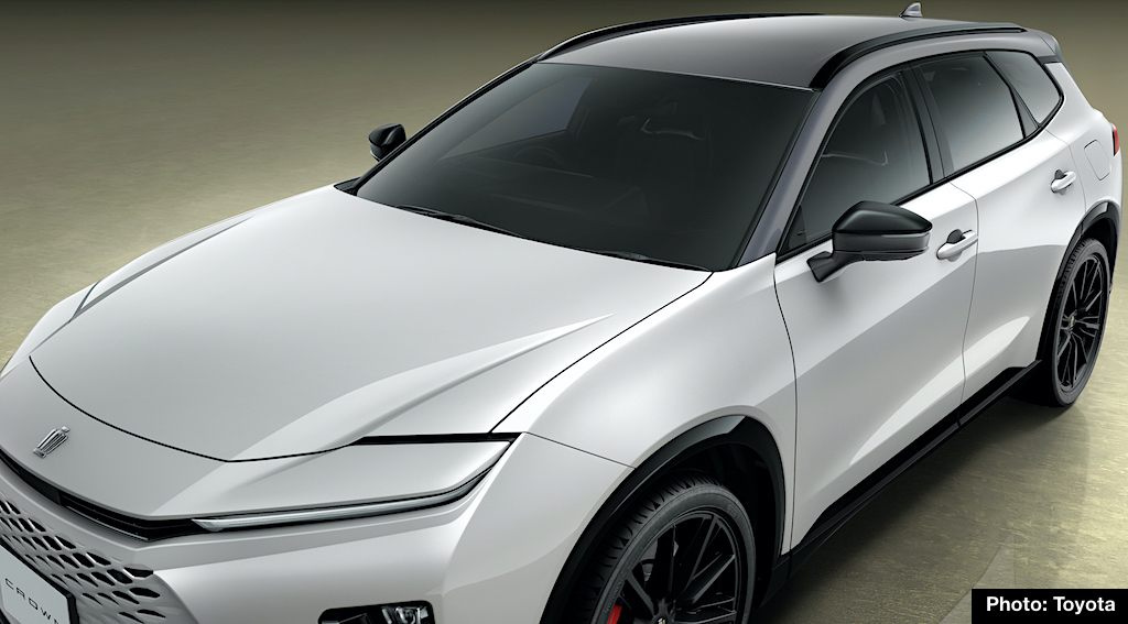 Toyota Crown Estate RS models in Japan feature a 2.5-liter engine with Plug-in Hybrid (PHEV) system and E-Four AWD, while Z models have a 2.5-liter engine Hybrid (HEV) system with E-Four AWD.