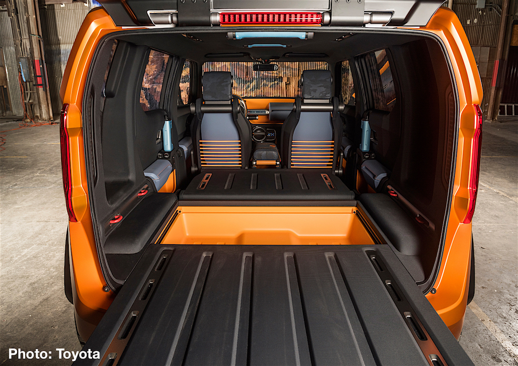 It’s a four-wheel drive toolbox penned by Toyota’s Calty Design Research Inc. in Newport Beach, Calif. With its unique functionalities and Rugged Charm compact design, the FT-4X is ready for “Casualcore” outings anytime. Calty’s designers instituted a Rugged Charm ethos when creating the FT-4X that places value on simplicity, capability, durability, and Toyota lineage.