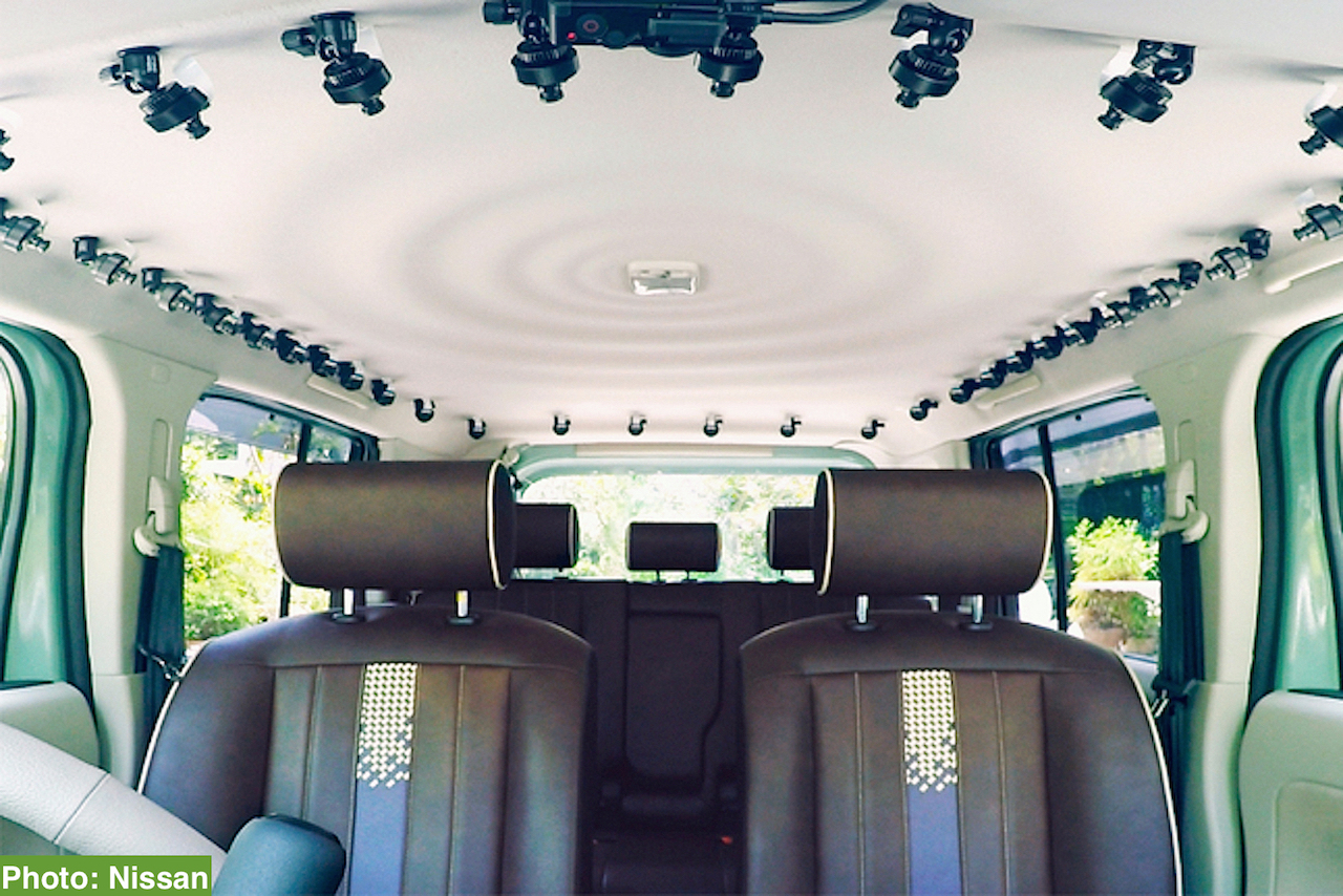 Cube Shutter Room can operate while the vehicle is stationary or underway. In an effort to promote safer driving, Nissan says the system can function automatically.