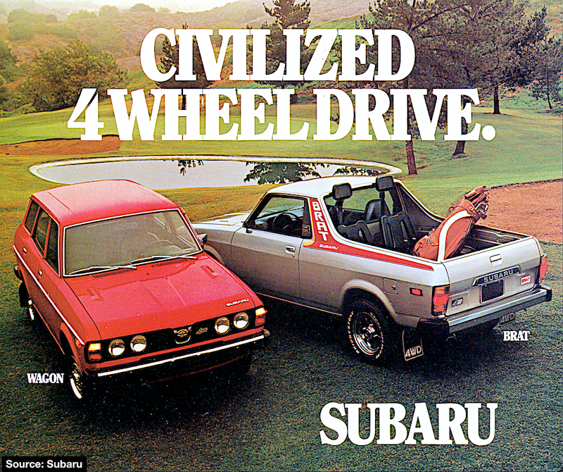 Subaru has produced some exciting performance vehicles over the years, like the 2005 Impreza WRX STi Type-UK, shown above. Yet a Subaru Leone 4WD Estate Van has the distinction as Japan’s first mass-produced AWD passenger car, when it was built in Sept. 1972.
