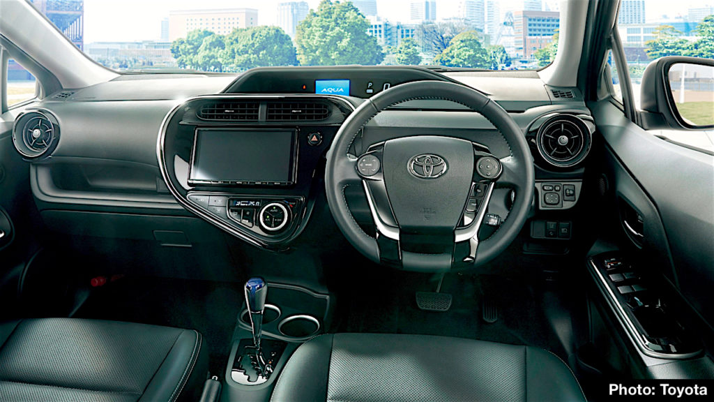 The 1.5-liter gas engine and Toyota Hybrid System II continues to drive the front wheels. Regular Aqua models in L, S, G and “soft leather selection” grades also receive a minor refresh with less aggressive styling (see the blue Aqua S below).