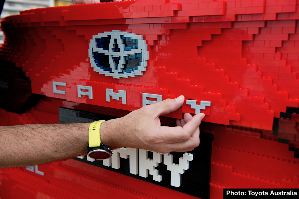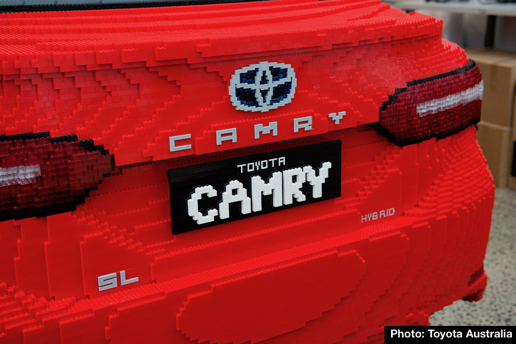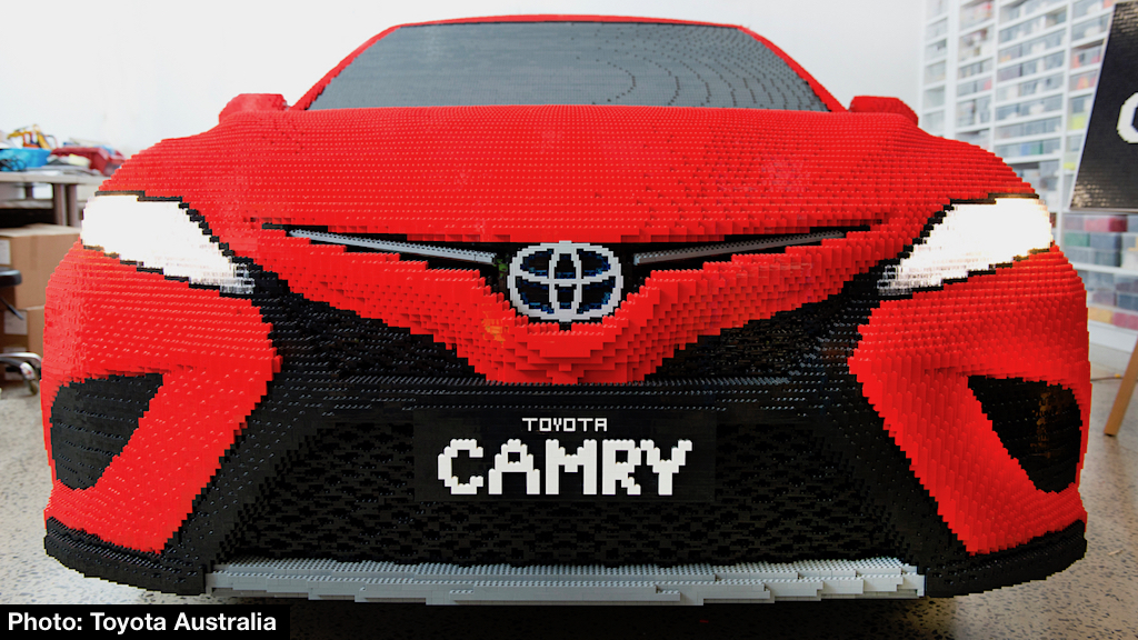 According to Toyota Australia, the new-generation Camry contains about 30,000 individual components. It takes roughly 17 to 18 hours to build one in Japan, including panel stamping, painting, welding and inspections. So how long would it take to make a Camry entirely out of LEGO® bricks?