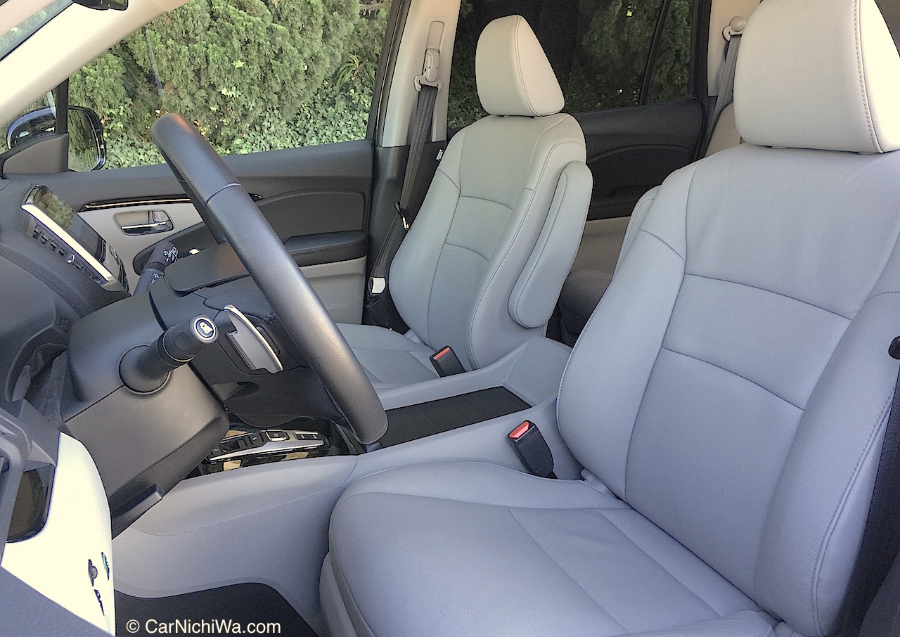Pilot’s comfortable front seats provided good support with the driver’s seat offering 10-way adjustment on the Touring model. All driver’s seat power adjustments are included in the Smart Entry system that stores a pair of user profile and heat settings for each of the two standard key fobs.
