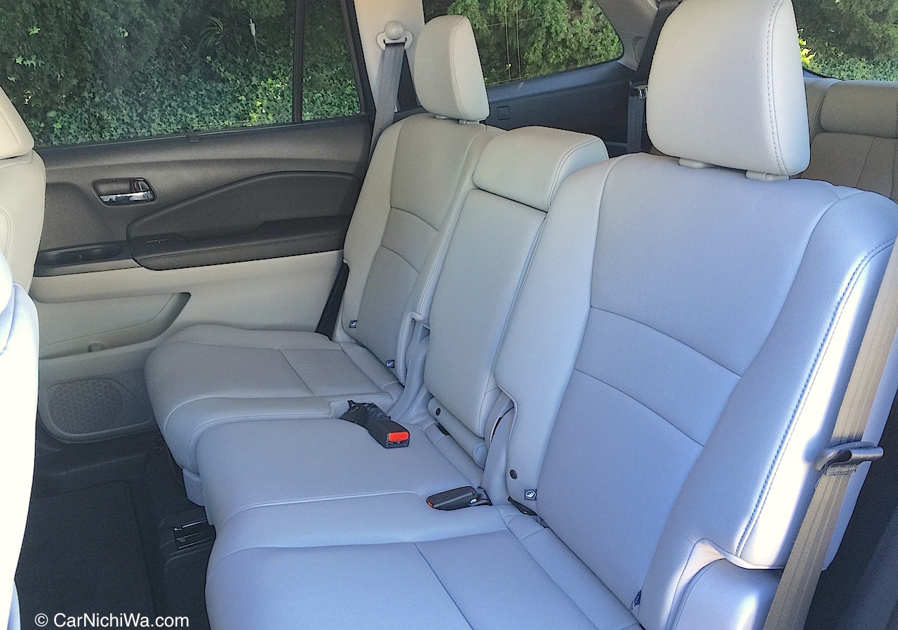 Pilot’s three-passenger third-row seat is a 60/40-split and folding design with three-position reclining. It’s a bit of a stretch to climb back there (for adults), yet once seated we thought the seats were quite comfortable.