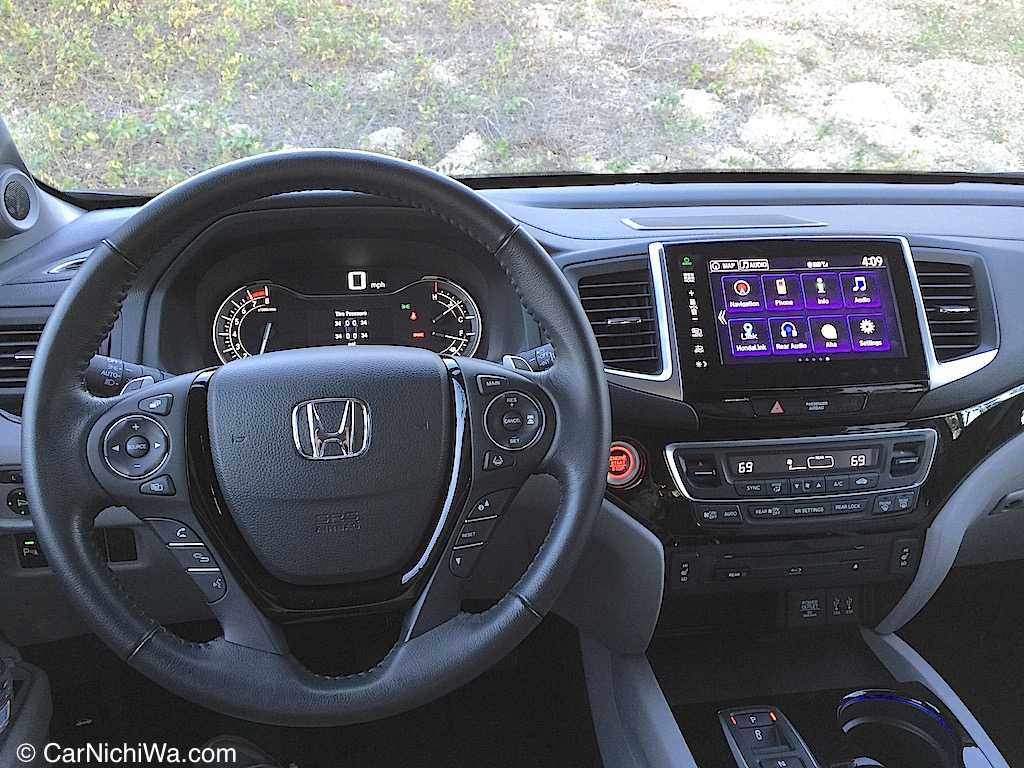 Pilot’s redesigned interior is pleasing to the eyes and fingertips thanks to the use of higher quality soft-touch materials. The sporty leather-wrapped steering wheel on our tester included commonly used controls so drivers can keep their hands on the wheel and eyes on the road.