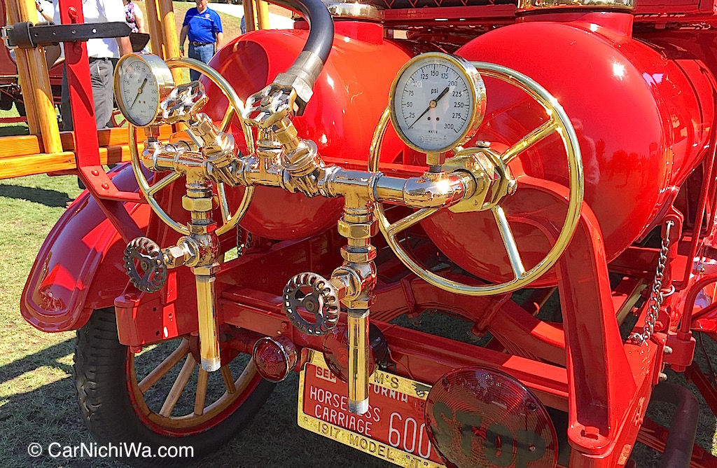 The owner describes this rig as an American LaFrance Type A Double-Tank Chemical Car. It even sports a “Horseless Carriage” California license plate that allows it to operate on city streets.