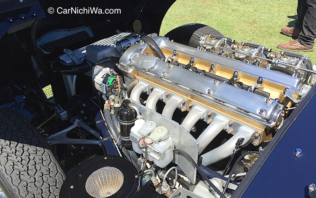 We had a friend years ago who used to comment that it’s easy to work on an E-Type engine while sitting on one of the front tires. It looks like the owner spent countless hours polishing every surface under the huge hood.