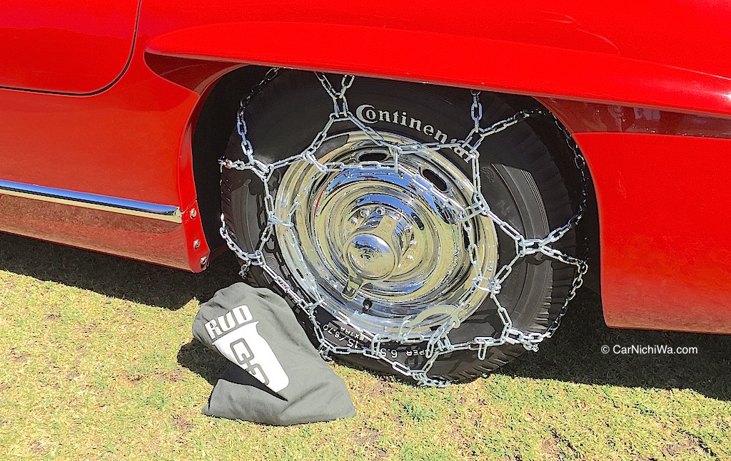 When’s the last time you saw a Gullwing wearing tire chains? Our hands would be trembling if we tried to install them fearing that we might mar the otherwise flawless paint.