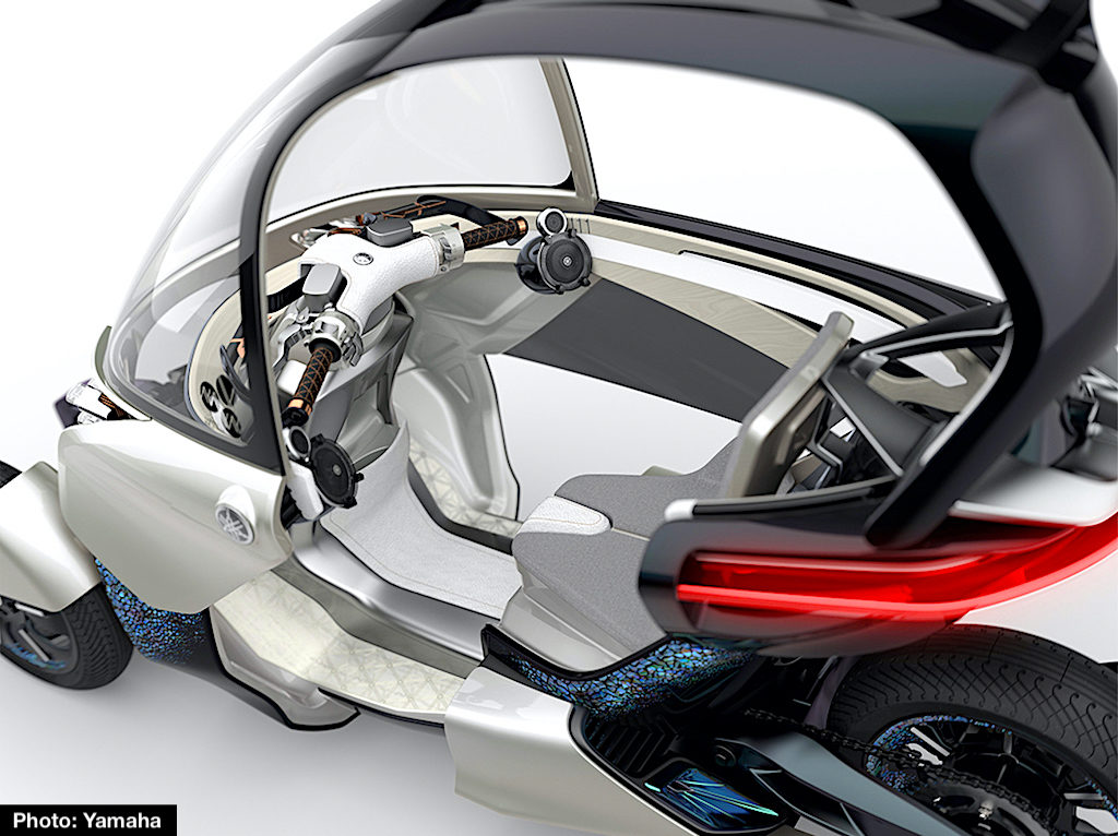 The cockpit offers interactive communication between the user and the vehicle through sound and light, suggesting how “the fusion of robotics and mobility technology could produce forms of mobility more in tune with human sensitivities.” It employs Yamaha’s ViReal™ system of immersive audio technology.