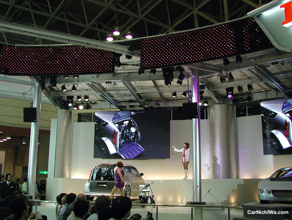This story takes a quick look back at our visit to the show, where we attended the press days, Oct. 24-25, 2001, at Makuhari Messe in Chiba. Shown above is the Bulldog concept that was presented during the automaker’s press conference.