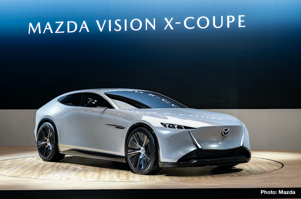 The VISION X-COUPE is beautiful, with its evolved “KODO Soul of Motion” design. And while it’s called a coupe, it actually has four doors. Mazda calls the concept a crossover coupe, with the “X” standing for “cross”.