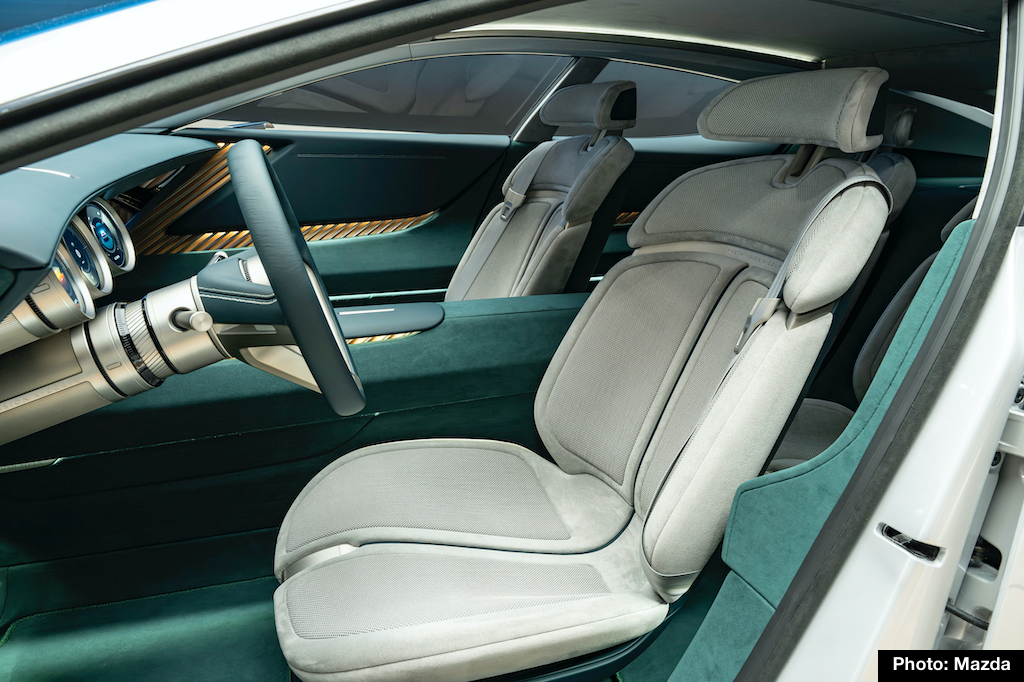 The powertrain features a Plug-in Hybrid (PHEV) system, with a twin-rotor, rotary turbo engine, plus an electric motor and battery. “With a maximum output of 510 PS, the vehicle offers a driving range of 160 km in motor-only mode and up to 800 km when operating in combination with the engine,” says Mazda.