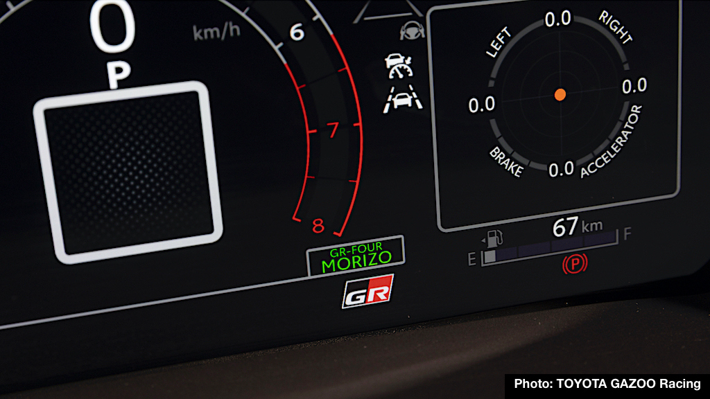 Another enhancement is an exclusive 4WD control mode. Said to be developed with Morizo, the driver-selectable control replaces Gravel mode with Morizo mode, adjusting front/rear initial torque and driving force distribution to 50:50. The GR full TFT instrument cluster display shows Morizo Mode mode when activated.