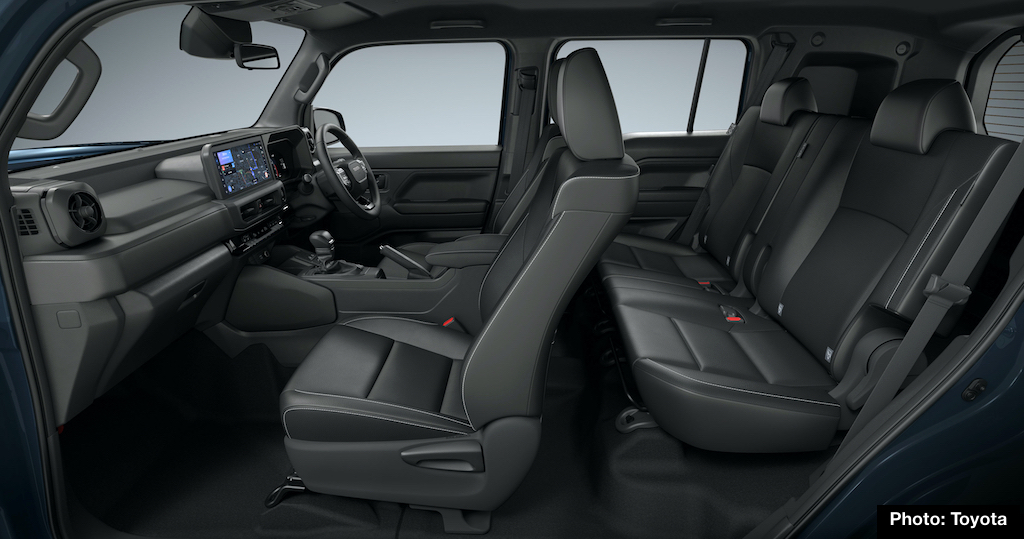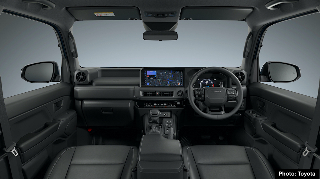 Land Cruiser FJ features two-row seating for five passengers, and likely has a split-folding rear seat for cargo carrying flexibility. The Toyota Safety Sense package is said to be included, with driver-assist functions featuring a Pre-collision Safety System.