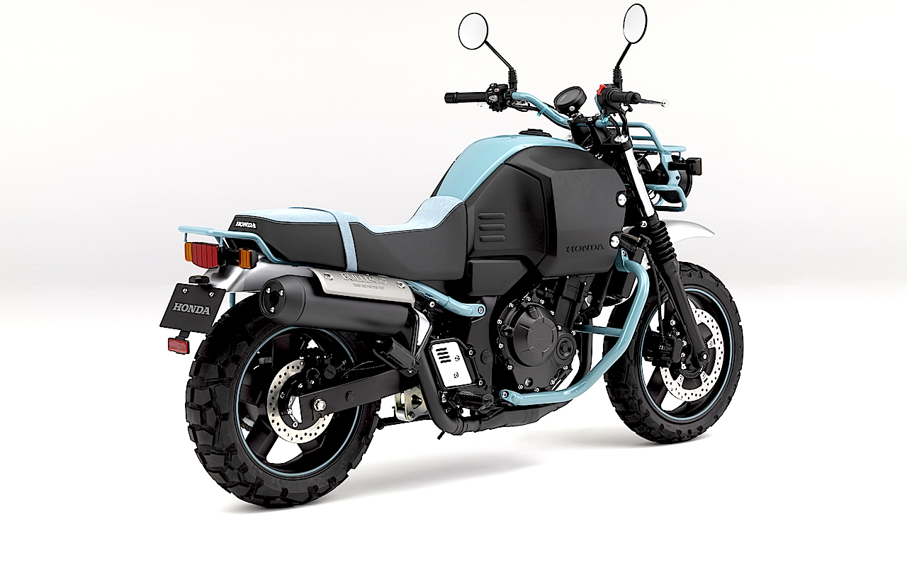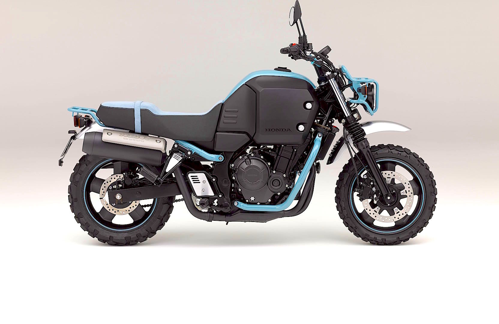 Honda’s Bulldog concept is powered by a 400cc liquid-cooled 4-stroke DOHC inline 2-cylinder engine. Honda says the engine is built to provide powerful, yet easy to handle output characteristics, realizing a nimble ride in a wide range of environments from urban to rural areas.