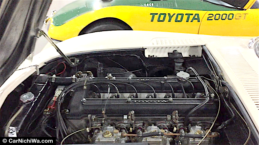 Under the hood of the Bond roadster (above) is the 2000GT’s DOHC inline-6, 1,988 cc engine rated at 150 horsepower at 6,600 rpm and 18.0 kg-m torque at 5,000 rpm.