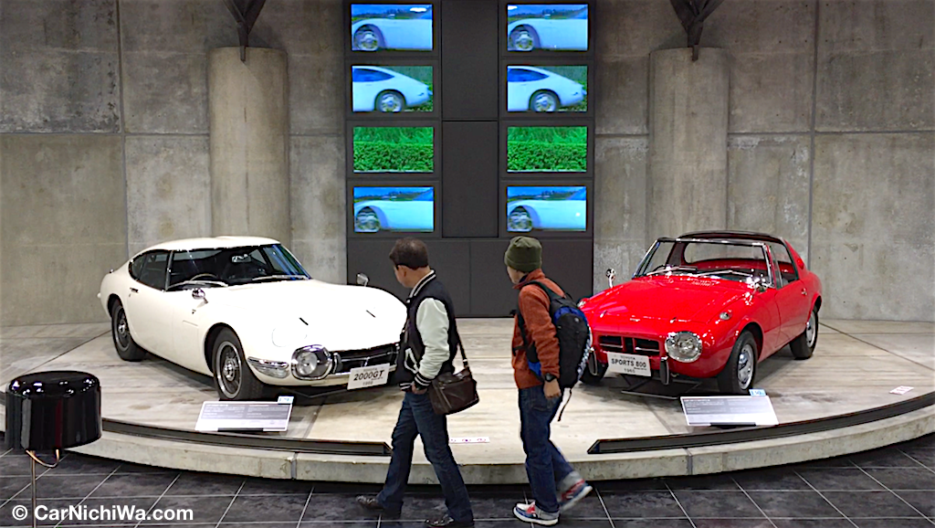 Visitors to the museum have a chance to see two iconic Toyota sports cars together in this display, a 1968 2000GT and 1965 Sports 800.