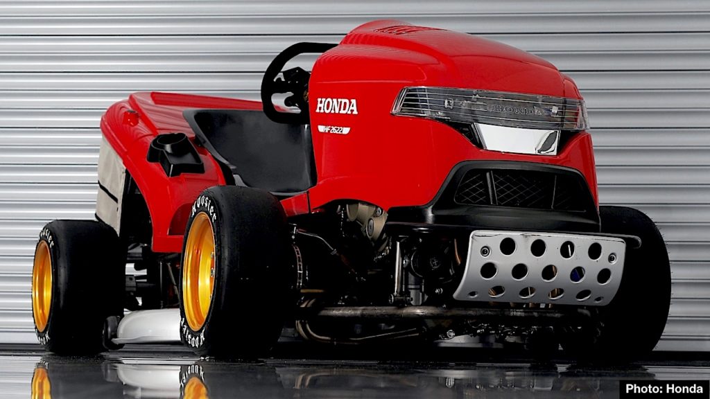 Honda says the new Mean Mower is meaner, faster, and louder. We were so dazzled by the specs that we forgot to mention the exhaust system employs Scorpion custom headers and titanium silencer. This is certainly not a garden variety mower.