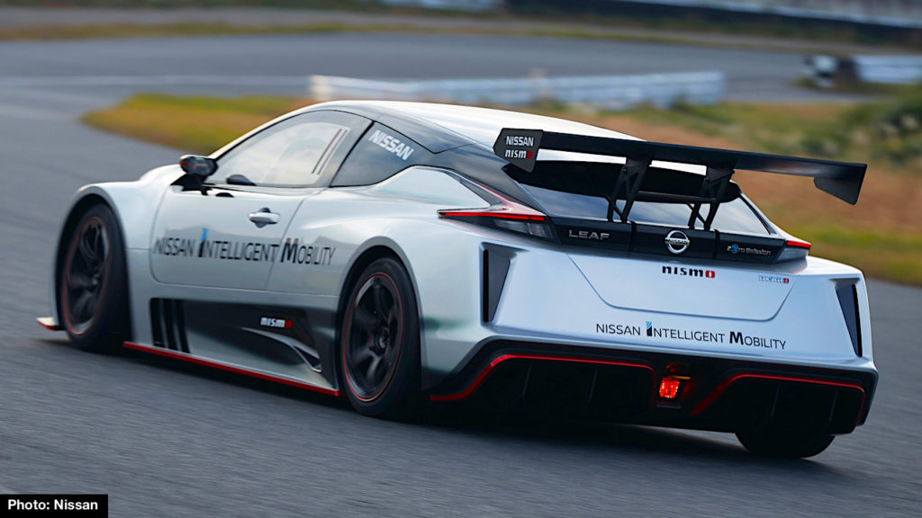 The specially built NISMO RC is dressed with Leaf-inspired styling cues, including Nissan’s V-motion front fascia with LED headlights, yet nearly everything else is custom-built for high-performance. For example, the bodywork features removable front and rear sections, an adjustable rear wing, and extensive use of lightweight components.