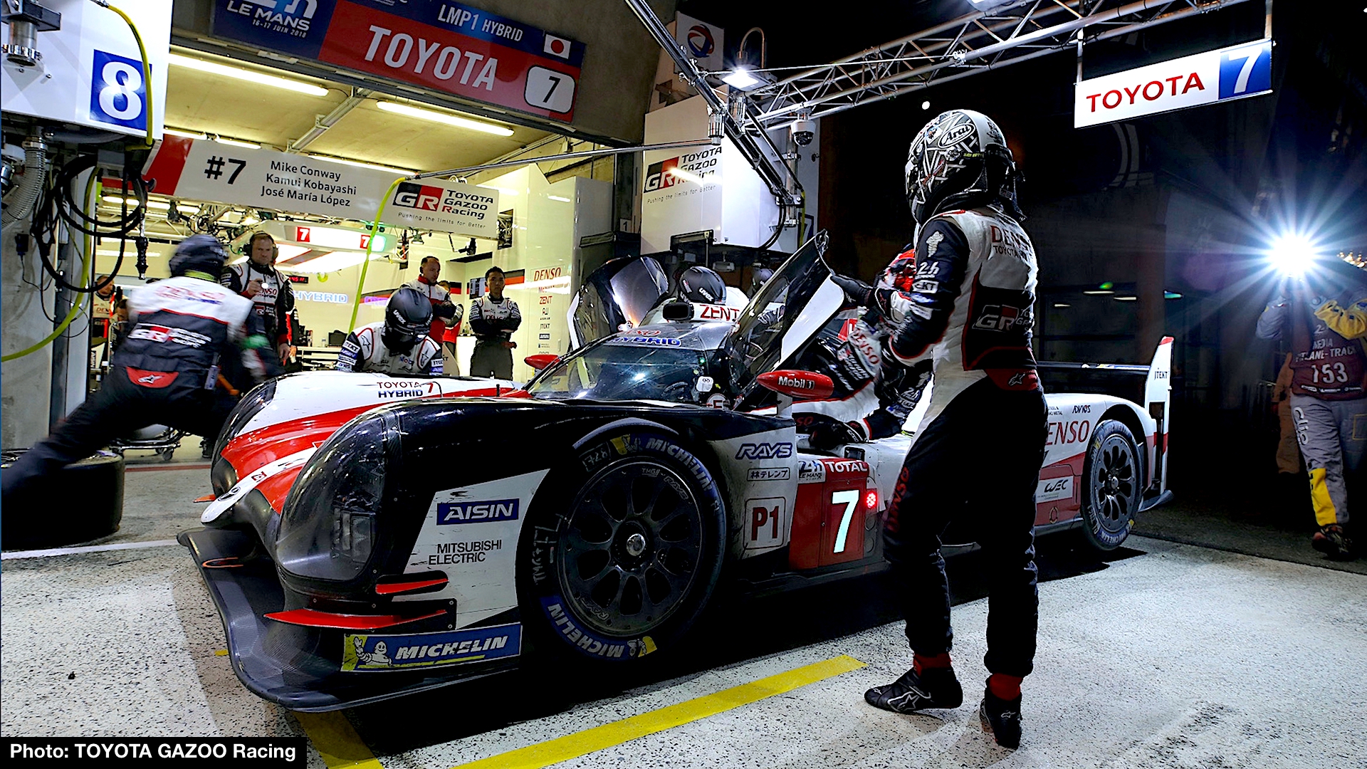 The team entered the two 1,000 hp TS050 Hybrid cars that use about 35 percent less fuel than in 2012 when they entered their first hybrid car, thanks to constant improvement in the efficiency of the hybrid electric powertrain. Kinetic energy recovery is said to be a key factor in achieving the improvement with energy generated under braking harvested by powerful motor/generators on both axles and converted into electrical energy, which is deployed under acceleration to save fuel and deliver performance.